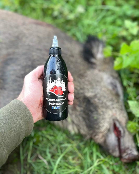Nous, l'équipe de Schwarzwaldwässerle, sommes Markus (chasseur depuis 26 ans) et Max, mon fils, également chasseur. La chasse est une tradition familiale depuis plus de 100 ans. Mon arrière-arrière-grand-père Heinrich Nebelin (voir photo), qui était maître-chasseur dans un grand domaine, a développé à l'époque, selon la tradition de mon arrière-grand-père et de mon père (tous chasseurs), l'appât pour la panse et le poisson. La recette a été transmise de génération en génération et a toujours assuré le succès de la chasse dans notre famille.