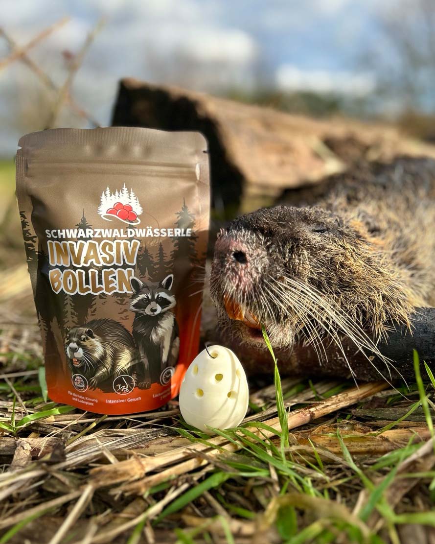 Wir setzen bei der Nutria-Jagd auf eine effektive Kombination aus Duftbollen, Duft-Lockei und Invasiv Flüssig.